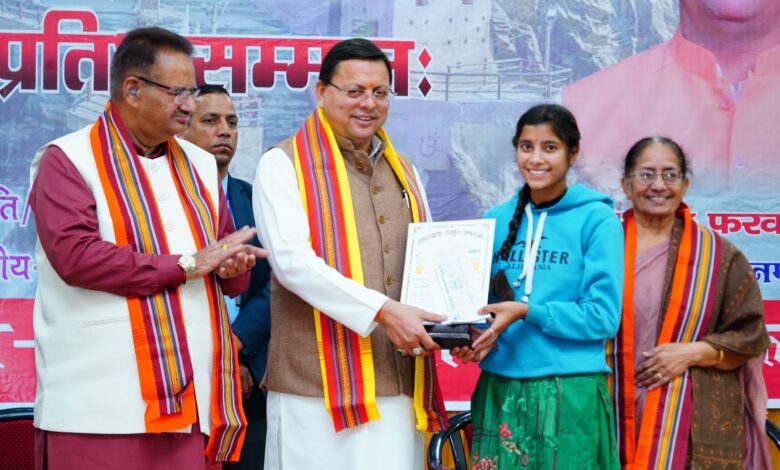 देहरादून। मुख्यमंत्री पुष्कर सिंह धामी ने मुख्यमंत्री आवास स्थित मुख्य सेवक सदन में संस्कृत शिक्षा विभाग द्वारा आयोजित किए गए कार्यक्रम में संस्कृत शिक्षा से जुड़े हुए 261 छात्र-छात्राओं को सम्मानित किया। उन्होंने संस्कृत छात्र प्रतिभा सम्मान में 2024-25 हेतु 10 वीं और 12 वीं के कुल 24 मेधावी छात्र-छात्राओं को सम्मानित किया। इसमें प्रथम, द्वितीय और तृतीय स्थान प्राप्त करने वालों को क्रमशः रु 5100, रु 4100 और रु 3100 रुपए की धनराशि दी गई। डॉ भीमराव अंबेडकर अनुसूचित जाति- जनजाति संस्कृत छात्रवृत्ति योजना 2024-25 हेतु कुल 148 छात्र-छात्राओं को सम्मानित किया। इसी प्रकार से मुख्यमंत्री ने गार्गी संस्कृत बालिका छात्रवृत्ति योजना 2024-25 के अंतर्गत कुल 89 छात्राओं को सम्मानित किया।