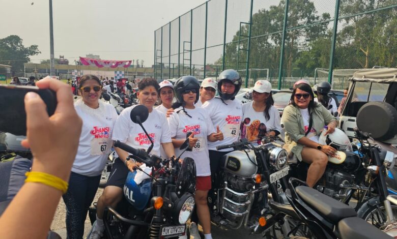 झांसी ओं व्हील्स की वूमेन बाइक रैली में महिलाओं ने दिया वूमेन सेफ्टी का संदेश