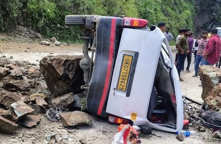 बद्रीनाथ राष्ट्रीय राजमार्ग पर शिवानंदी के पास एक कार के ऊपर अचानक बोल्डर गिरने से एक महिला की मौत, तीन घायल