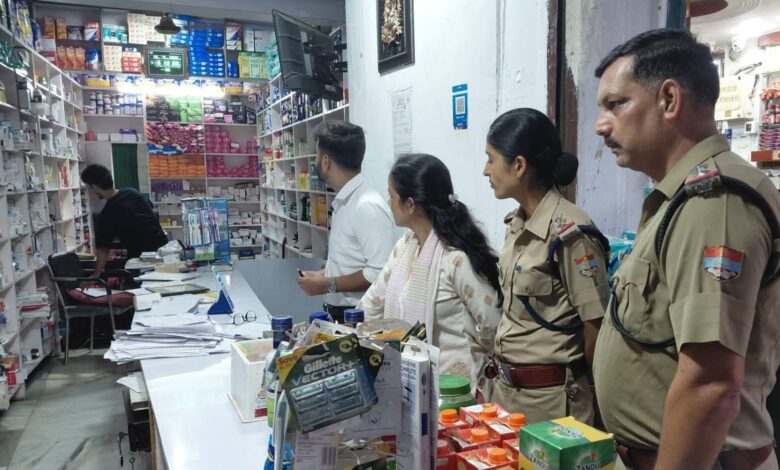 तहसील और पुलिस की टीम ने दवाई की दुकानों का किया निरीक्षण