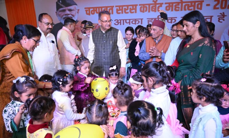 चम्पावत। प्रदेश के ग्राम्य विकास मंत्री गणेश जोशी ने आज जनपद चम्पावत के टनकपुर में आयोजित ‘चम्पावत सरस कॉर्बेट महोत्सव–2026’ में मुख्य अतिथि के रूप में सहभागिता की। कार्यक्रम के दौरान उन्होंने विभिन्न विभागों, स्वयं सहायता समूहों एवं स्थानीय उद्यमियों द्वारा लगाए गए स्टॉलों का निरीक्षण किया और उत्पादों की गुणवत्ता की सराहना करते हुए प्रतिभागियों का उत्साहवर्धन किया। इस दौरान मंत्री गणेश जोशी ने पशु सखियों की मोबाइल फोन और विभिन्न स्वयं सहायता समूह की महिलाओं को चैक तथा कृषकों को फार्म मिशनरी बैंक भी वितरित किया। कार्यक्रम के दौरान मंत्री गणेश जोशी ने बाल विकास विभाग द्वारा 25 बच्चों का सामूहिक जन्म दिवस भी कैक काटकर मनाया।