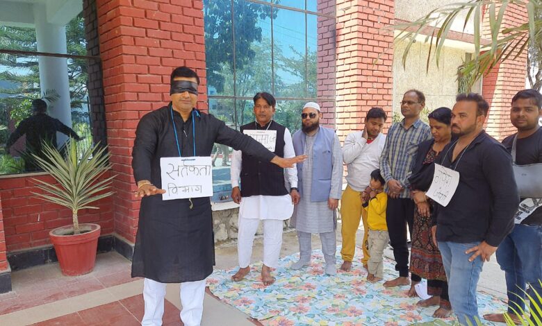 रविंद्र ने आगे बताया कि उन्होंने 1 वर्ष पूर्व निवर्तमान मेयर सुनील उनियाल गामा के विरुद्ध सतर्कता विभाग में ज्ञापन सोपा था जिसमें उन्होंने उनकी आय से अधिक संपत्ति की जांच की मांग की थी और कुछ समय बीत जाने पर जब कार्रवाई नहीं हुई तो उन्होंने पुनः एक पत्र एसपी विजिलेंस को सौप था परंतु अब साल भर होने को आया है कोई कार्रवाई न होती देख एवं विजिलेंस विभाग से रूष्ट होकर रविंद्र आनंद ने आंखों में पट्टी बांधकर यह दर्शाया की सतर्कता विभाग को भ्रष्टाचारी जो सत्ता में बैठे हुए हैं वह दिखाई नहीं देते और विपक्ष में यदि किसी नेता पर कोई मामला उठता है तो उसे तुरंत गिरफ्तार कर लिया जाता है और उस पर कार्रवाई भी की जाती है लेकिन सत्ता की हनक इतनी अधिक है कि भारतीय जनता पार्टी के नेता भ्रष्टाचारी और आए से अधिक संपत्ति के मामले में लिप्त होने के बावजूद भी सतर्कता विभाग के कानो तले जूं तक नहीं रेंगती। रविंद्र ने कहा कि हमारे देश के नेताओं ने हमें जो आंदोलन करने के तरीके बताएं हैं उन्हीं की राह पर चलते हुए उन्होंने इस प्रकार का हथकंडा अपनाते हुए इस पूरे प्रकरण को नाटकीय रूप दिया। उन्होंने कहा कि यदि जल्द ही निवर्तमान मेयर सुनील उनियाल गामा एवं सुबे के कृषि मंत्री गणेश जोशी की आय से अधिक संपत्ति की जांच सतर्कता विभाग द्वारा नहीं की जाती तो उन्हें उग्र आंदोलन की ओर अग्रसर होना होगा और इसकी समस्त जवाबदारी शासन , प्रशासन और विजिलेंस विभाग की होगी। इस दौरान रिहाना परवीन, इकबाल राव ,नवीन सिंह चैहान ,अरमान बेग, आजाद अंसारी ,शहजाद कुरैशी, नवाब ,समीर आदि मौजूद थे।