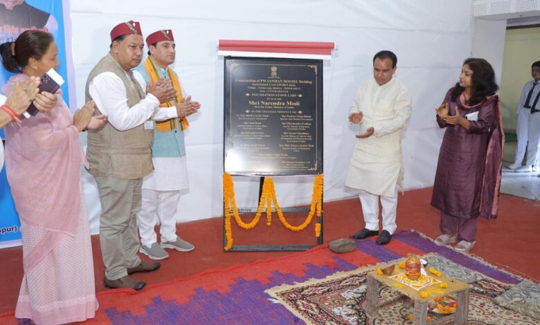 देहरादून। प्रधानमन्त्री नरेन्द्र मोदी द्वारा प्रधानमन्त्री जनजातीय आदिवासी न्याय महाअभियान (पी०एम० जनमन) कार्यक्रम के अन्तर्गत विशेष रूप से कमजोर जनजातीय समूहों के लिए स्वीकृत छात्रावासों का वर्चुअल माध्यम से शिलान्यास किया गया। इस अवसर पर माननीय प्रधानमन्त्री जी द्वारा भगवान बिरसा मुण्डा की धरती झारखण्ड राज्य से देश के विनिन्न राज्यों के लिए स्वीकृत जनजातीय छात्रावासों तथा एकलव्य आवासीय छात्रावासों का एक साथ वर्चुअल माध्यम से शिलान्यास किया जिसमें उत्तराखण्ड के लिए स्वीकृत 3 छात्रावासों में से एक छात्रावास जो कि विकासखण्ड विकासनगर के सभावाला में निर्मित किये जाने वाले छात्रावास का शिलान्यास भी सम्मिलित है। प्रधानमंत्री के द्वारा वर्चुअल रूप में किये गये शुभारम्भ कार्यक्रम के अवसर पर राज्य स्तर से कार्यक्रम को राजीव गांधी नवोदय विद्यालय, ननूरखेडा देहरादून में आयोजित किया गया. जिसका शुभारम्भ मंत्री जी विद्यालयी शिक्षा द्वारा दीप प्रज्जवलित कर किया गया। इस अवसर पर राज्य हेतु स्वीकृत उक्त छात्रावास के शिलापट्ट का अनावरण एंव उत्तराखण्ड की संस्कृति के अनुरूप शुभारम्म सम्बन्धी पूजन डॉ० धन सिंह रावत, शिक्षा मन्त्री विद्यालयी शिक्षा के कर कमलों से सम्पन्न हुआ। उक्त कार्यक्रम में शिक्षामंत्री के साथ त्रिपुरा के विधानसभा उपाध्यक्ष रामप्रसाद पाल तथा मणिपुर से बाबुल झा की भी गरिमामय उपस्थिति रही।